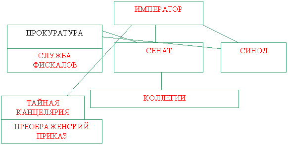 СЕНАТ – высший коллегиальный орган центрального управления, члены которого назначались царём (первоначально был коллективным регентом во время отсутствия Петра I), компетенция его:
