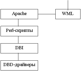 - формируются блоки данных от серверов БД на WEB-сервере и производится вывод данных в виде WML-страниц на браузеры клиентов.