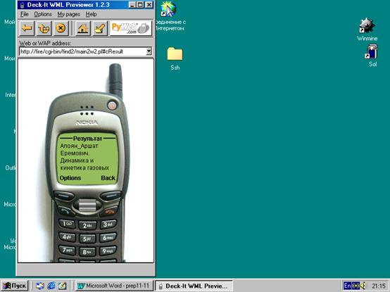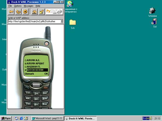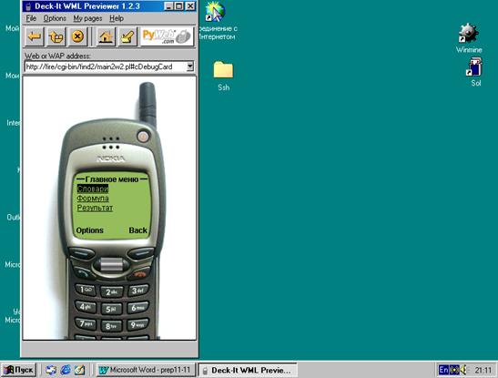 Следует также отметить, что для отладки WAP-сервисов использовались имитаторы мобильных телефонов, в частности, Deck-It и M3Gate.
