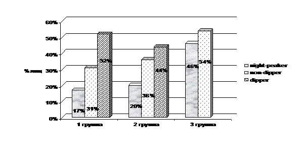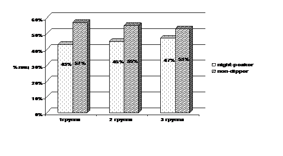 Рисунок 2. Исходное соотношения типов нарушения суточного профиля САД в группах больных