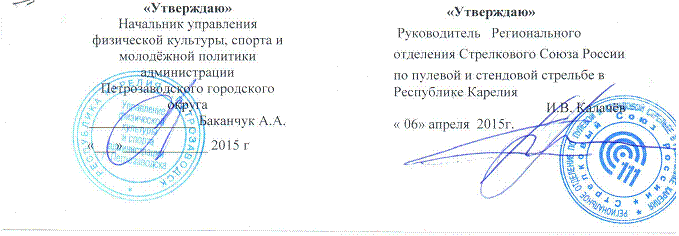 Соревнований Петрозаводского городского округа, включенные в настоящее Положение (далее – спортивные соревнования), проводятся согласно решению РО ССР В РК по пулевой и стендовой стрельбе от 01.01.2001г. в соответствии Календарным планом физкультурных и спортивных мероприятий Петрозаводского городского округа на 2015 год.