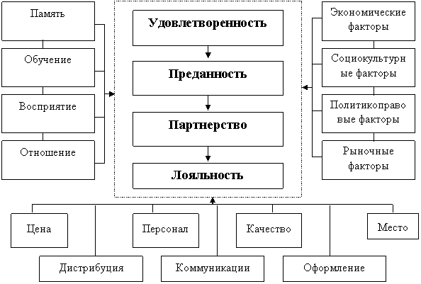 Маркетинг отношений ориентирован на: достижение стратегических интересов компании; удержание существующих потребителей, а не на привлечение новых; развитие долгосрочных, создающих добавленную стоимость отношений сотрудничества; согласование всех бизнес-процессов компании с обеспечением ценности для потребителей (технология, управление, коммуникации и др.); ведение диалога с потребителями. Стратегией бизнеса должна стать лояльность, причем лояльность как покупателей, так и сотрудников. Эти две стороны «общей лояльности» настолько взаимосвязаны, что понимание и управление одной из них требует понимания и управления другой. Программы укрепления лояльности клиентов должны начинаться с приведения в порядок образного уровня. Для этого следует начать с работы над культурой обслуживания, над лояльностью персонала, так как именно персонал является главным транслятором состояния компании. Когда лояльность персонала и клиентов станет естественной, необходимо подключать знаковые каналы, сообщая клиентам цифры и факты, которые доказывают, что предприятие действительно заслуживает лояльного к нему отношения.