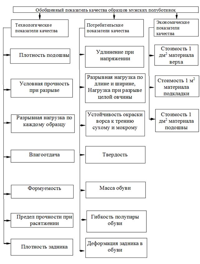 РРис. 1 показателей качества, используемых для комплексной оценки качества образцов мужских полуботинок