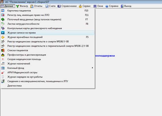 Рис.4. Меню «Данные/Журнал записи на прием».