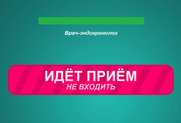 Нажмите кнопку «Принять пациента» на форме «Журнал записи на прием», тогда в АС «Поликлиника» откроется талон пациента, а на экране ПАК ЭО высветится надпись «Не входить». После внесения данных о приеме в талон пациента нажмите кнопку «Сохранить».
