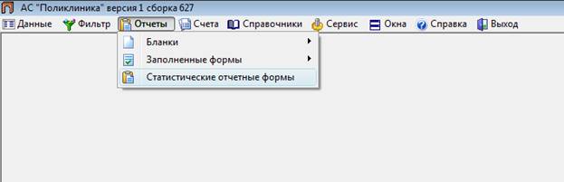 Рис.9. Меню Отчеты/Статистические отчетные формы.
