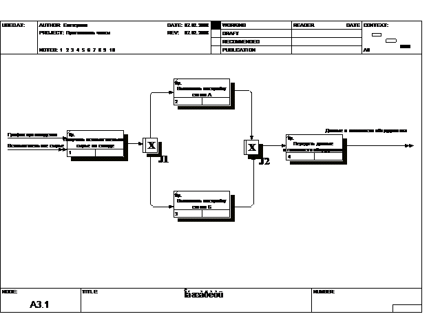 Методология IDEF3- это методология документирования технологических процессов. Широко используется для создания моделей бизнес процессов организации на нижнем уровне - при описании работ, выполняемых в подразделениях и на рабочих местах. Имеет те же графические объекты, что и IDEF0. Следует отметить, что IDEF3 обладает дополнительными объектами, которые служат для отображения возможных вариантов ветвления и слияния потоков работ, реализующихся при определенных условиях. Данные объекты являются логическими символами :