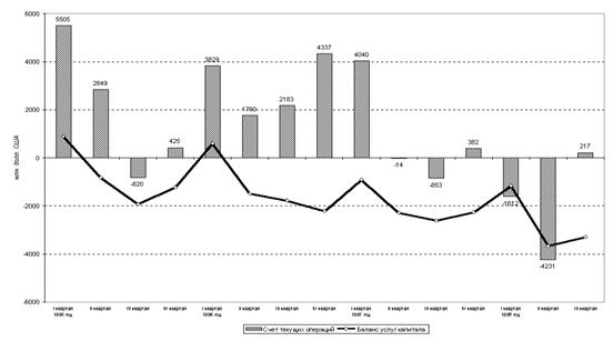 Счет текущих операций и баланс услуг капитала РФ в 1995 - III квартале 1998 г.