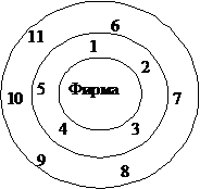 1 — покупатели, 2 — конкуренты, 3 — посредники, 4 — поставщики, 5 — контактные аудитории, 6 — макроэкономика, 7 — политика и право, 8 — демография, 9 — культура, 10 — НТП, 11 — экология.