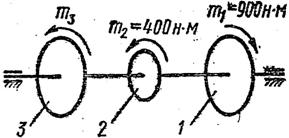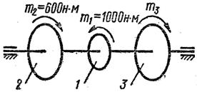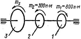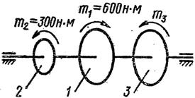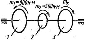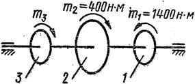 Задание: Определить величину крутящих моментов для каждого участка, построить эпюру крутящих моментов, определить диаметр вала на каждом участке, определить угол закручивания каждого участка. Принять мощность на колесах: