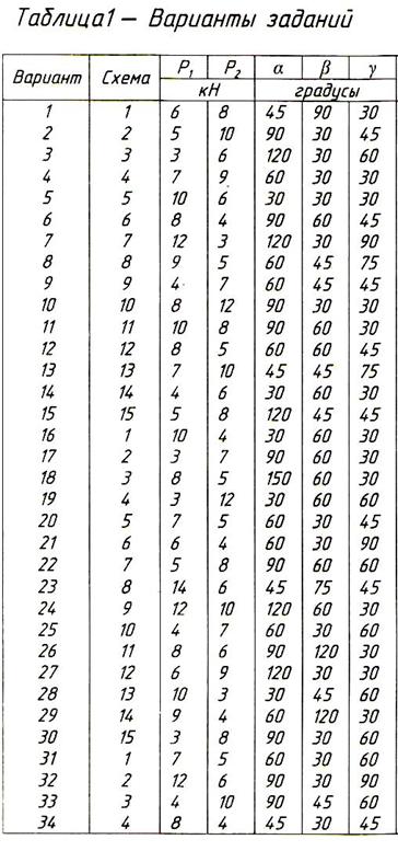 Задание: Определить усилия в стержнях заданной конструкции аналитическим способом. Схему выбрать в соответствии с номером студента по списку журнала.