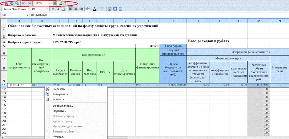 В процессе или после заполнения данных можно просматривать отчёты, которые формируются автоматически программой на основе введённых данных. Отчёты по бюджетной заявке и формам обоснований аналогичны таблицам ввода данных.