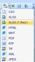 и из выпадающего меню выбрать формат XLSX (1лист)