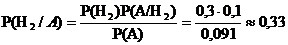 По условию Р(А/Н1)=0,09; Р(А/Н2)=0,1; Р(А/Н3)=0,08.