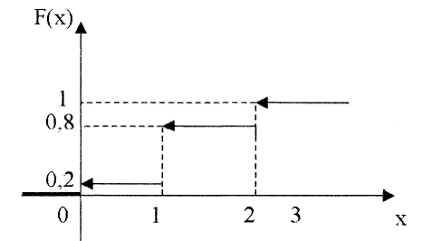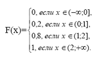 если x из (0;1], то F(x)=P(X<x)=P(X=0)=0,2;