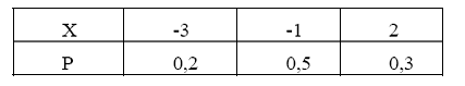 Найдем М[X]=(-3)·0,2+(-1)·0,5+2·0,3=-0,5;