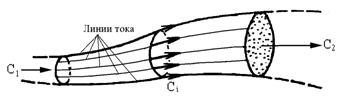 Через некоторый интервал времени Dt газ из сечения «1» переместится на расстояние Dl1=C1·Dt, а из сечения «2» на расстояние Dl2=C2·Dt. Согласно уравнению неразрывности через эти сечения за время Dt проходит одинаковая масса жидкости: