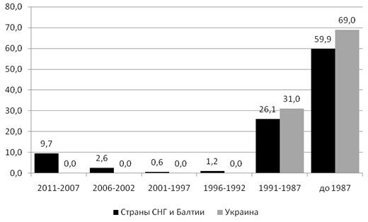 Рис. 3 – Структура парка зерновозов СНГ и Украины по сроку службы