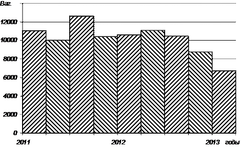 С другой стороны в настоящее время в Украине происходит снижение объемов производства грузовых вагонов. Следует отметить, что в Украине грузовое вагоностроение является экспортно-ориентированной отраслью, однако, начиная со второго квартала 2012 года, наблюдается падение экспорта грузовых вагонов, прежде всего, за счет снижения спроса в Российской Федерации (см. рис. 4) [1].