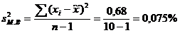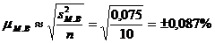=0,95, устанавливается по распределению Стьюдента (см. Табл. 6.2.) значение коэффициента доверия t=2,263.