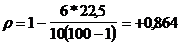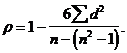 Построим показатель корреляции рангов для нашего примера: