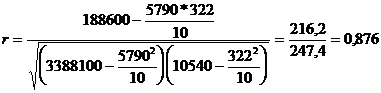 Все необходимые данные для определения коэффициента корреляции есть в таблице, их лишь остается подставить в необходимую формулу.