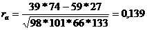 Он так же меняется от -1 до +1 и для нашего примера равен: