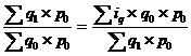Это - средняя арифметическая из индивидуальных индексов объёма продукции (iq ), взвешенная по стоимости продукции базисного периода в базисных или сопоставимых ценах (p0).