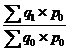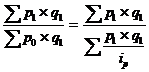 В этой формуле через “р” обозначаются цены, а через “q” - количество продукции (товаров).Подстрочные значки “0” и “1” обозначают соответственно текущий и базисный периоды.