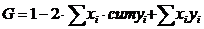 5) Коэффициент концентрации доходов (коэффициент Джинни). Этот коэффициент характеризует степень неравномерности в распределении денежных доходов между всеми социальными группами населения. Он рассчитывается по численно равным группам населения по формуле: