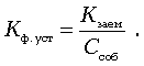 Коэффициент финансовой устойчивости Кф. уст определяет способность предприятия (фирмы) привлекать в хозяйственный оборот чужие заемные средства. Он рассчитывается как отношение кредиторской задолженности и других заемных средств Кзаем к величине собственного капитала Ссоб :
