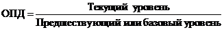 1) Относительный показатель динамики (ОПД) (или индекс динамики) — характеризует динамику процесса, т. е. изменения во времени. Это отношение уровня (значения) показателя в более поздний период к уровню этого показателя в более ранний период: