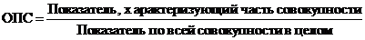4) Относительный показатель структуры (ОПС) — это отношение части к целому. Он характеризует структуру совокупности и показывает, какую долю (или удельный вес) во всей совокупности составляет отдельная ее часть: удельный вес женщин, мужчин, малых предприятий, частных предприятий: