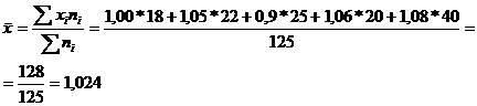 Полученная средняя была бы правильной, если бы каждый рабочий сделал только по одной детали. Но в течение дня отдельными рабочими было изготовлено различное число деталей. Для определения числа деталей, изготовленных каждым рабочим, воспользуемся следующим соотношением: