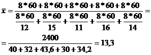Число деталей, изготовленных каждым рабочим, определяется отношением всего времени работы к среднему времени, затраченному на одну деталь. Тогда среднее время, необходимое для изготовления одной детали, равно: