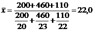 В практике экономической статистики иногда приходится исчислять среднюю по групповым средним или по средним отдельных частей совокупности (частным средним). В таких случаях за варианты (х) принимаются групповые или частные средние, на основании которых исчисляется общая средняя как обычная средняя арифметическая взвешенная.