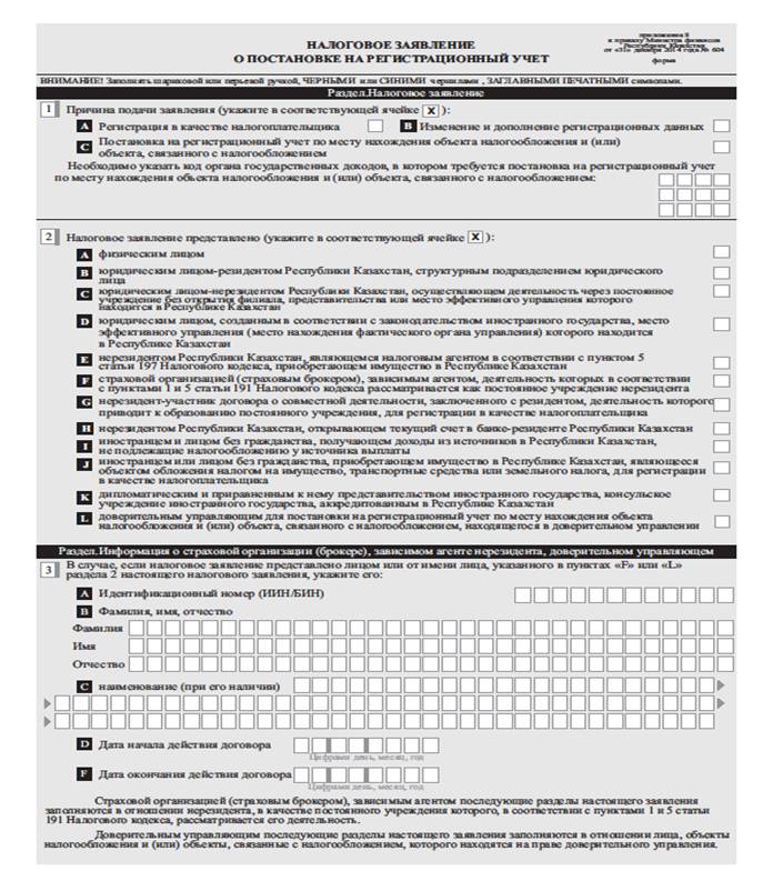 налоговое заявление согласно приложениям 1 и 2 к настоящему стандарту государственной услуги;