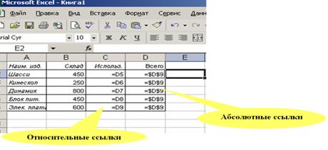 l Абсолютные ссылки – ячейки обозначаются координатами ячеек в сочетании со знаком $ (например: $D$9).