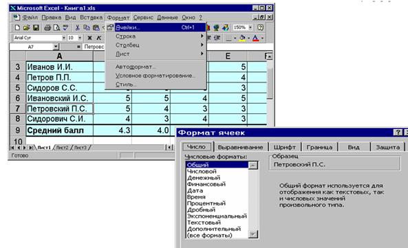 Формат ®Ячейки… - для форматирования Д.