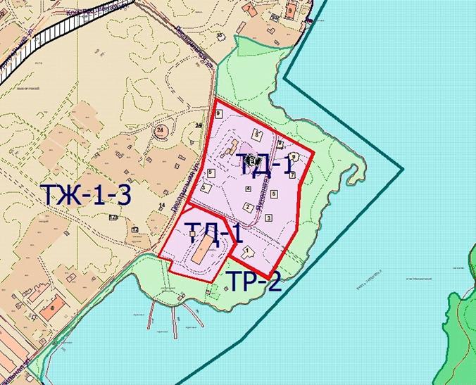 Изменение границ территориальной зоны ТД-1 на ТЖ-1-3 применительно к земельным участкам с кадастровыми номерами 47:01:0104004:21; 47:01:0104004:22; 47:01:0104004:20; 47:01:0104004:23; 47:01:0104004:24; 47:01:0104004:18; 47:01:0104004:17; 47:01:0104004:19; 47:01:0104004:26; 47:01:0104004:27; 47:01:0104004:28; 47:01:0104004:152; 47:01:0104004:25; 47:01:0104004:49