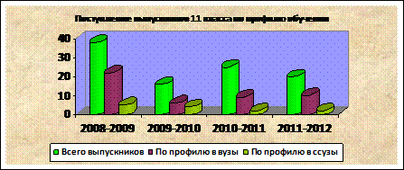 Таблица к диаграмме «Поступление выпускников 11 класса по профилю обучения»