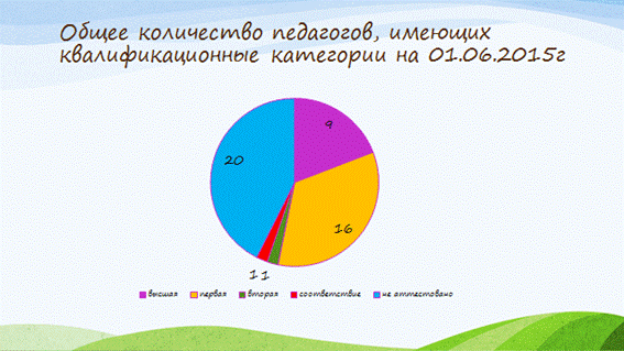 1.12. Работа по аттестации педагогических и руководящих кадров, ее результативность: 25