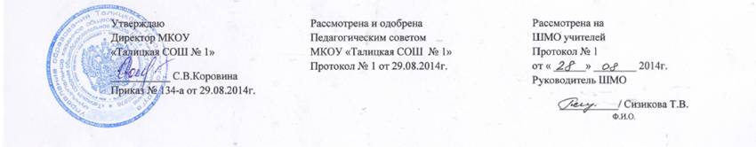 Ø Учебный план МКОУ «Талицкая СОШ№ 1» на 2014-2015 учебный год;
