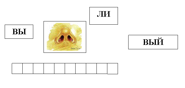 Логопед: А теперь разыграем серебряную медаль. Чтобы стать настоящим спортсменом нужно много трудиться и тренироваться. Победа Олимпийским чемпионам достается после продолжительных тренировок. Если соберете это слово из слогов, разбросанных в прямоугольниках, узнаете, каким должен быть спортсмен, чтобы первым прийти к финишу Но один слог. зашифрован, чтобы победа не досталась вам слишком легко.
