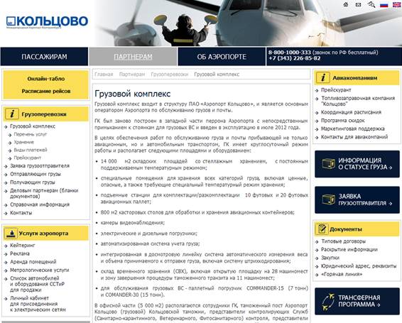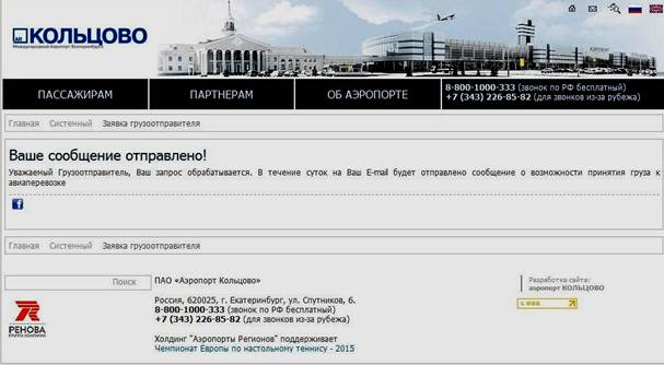 Заявка размещена в разделе внешнего сайта Аэропорта Кольцово: