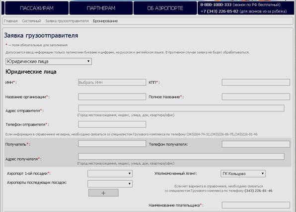 Инструкция по заполнению Заявки грузоотправителя на сайте Аэропорта Кольцово.