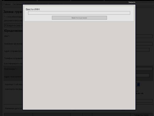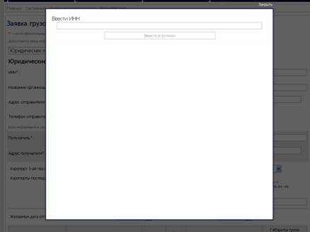 - если по указанному ИНН не найден грузоотправитель, то необходимо ввести данные по нему вручную. Для этого в дополнительной форме нажать кнопку “Ввести вручную”: