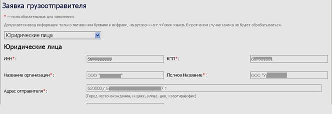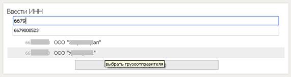 - введите ИНН, появится список грузоотправителей, выберите нужный;