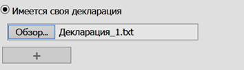 Если установить значение на переключателе «Имеется своя декларация» , появится возможность прикрепления необходимых сопроводительных документов.