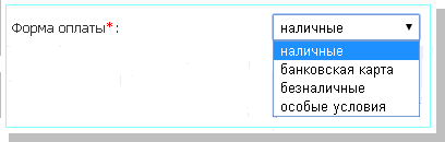 Выберите форму оплаты из выпадающего списка